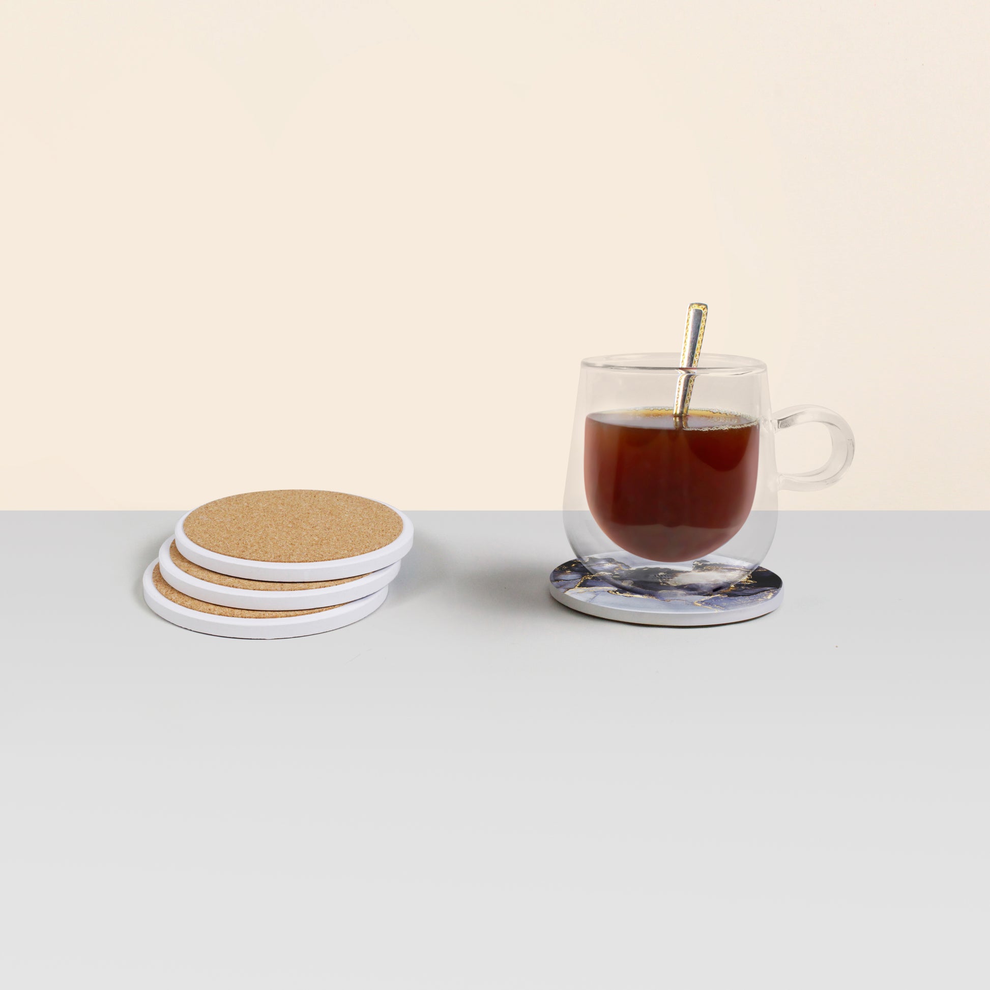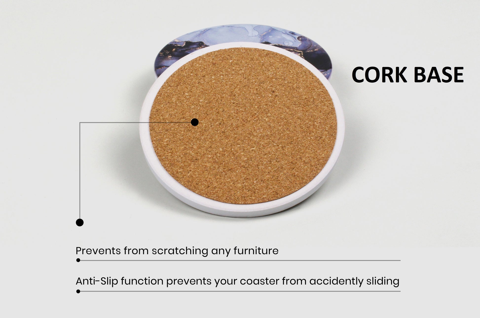- [ SURFACE FRIENDLY ] - The base of our coasters is made of cork which prevents scratches appearing on your tables. The anti-slip feature also prevents the coasters from sliding.